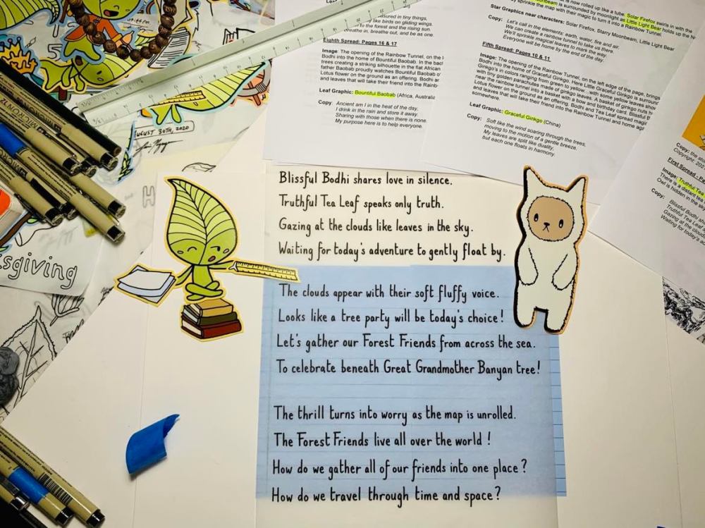 While Lanvi was crafting her visual masterpieces Laural imagined their voice. As the ambassadors and caretakers of the Everlasting Forest they had a lot to say. Laural focused on the joyful enthusiasm of each Forest Friend as well as the environment in which they lived. She spent time researching the botanical and spiritual background for each Forest Friend.