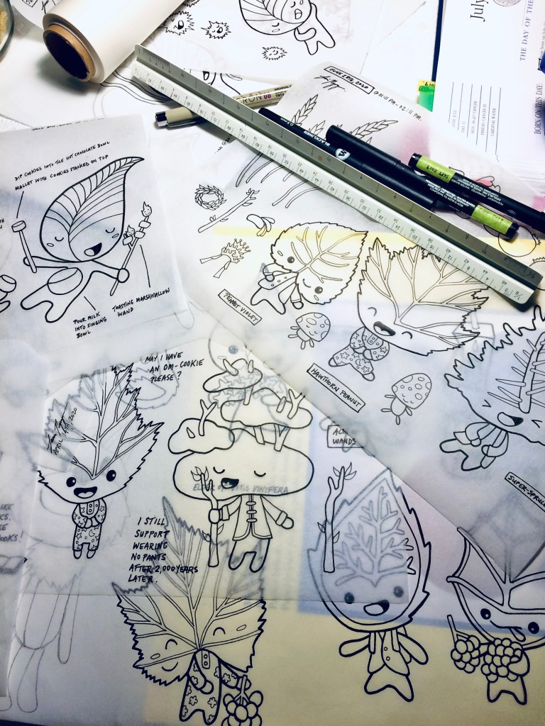 We began by focusing on character development. We shared our thoughts for creating new Forest Friends that spanned the globe as well as fine tuning the ones already created. We created names, clothing and accessories, along with identifying their unique environments and cultures.