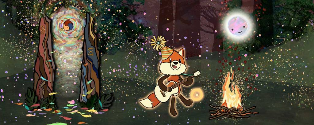 Solar Fire Fox is the one who brings warmth and sunlight to the Everlasting Forest. Solar Fire Fox functions as an intermediary between the sun and the four elements of earth (fire, wind, water and air) to create magical portals for the friends to travel. Solar Fire Fox loves to tend to the trees and flowers as they grow and blossom. As a powerful and focused creator, Solar Fire Fox is also delicate and tender. When not shining light into the forest, Solar Fire Fox loves to play the guitar and dance between flickering firelight and mystical moonlight.